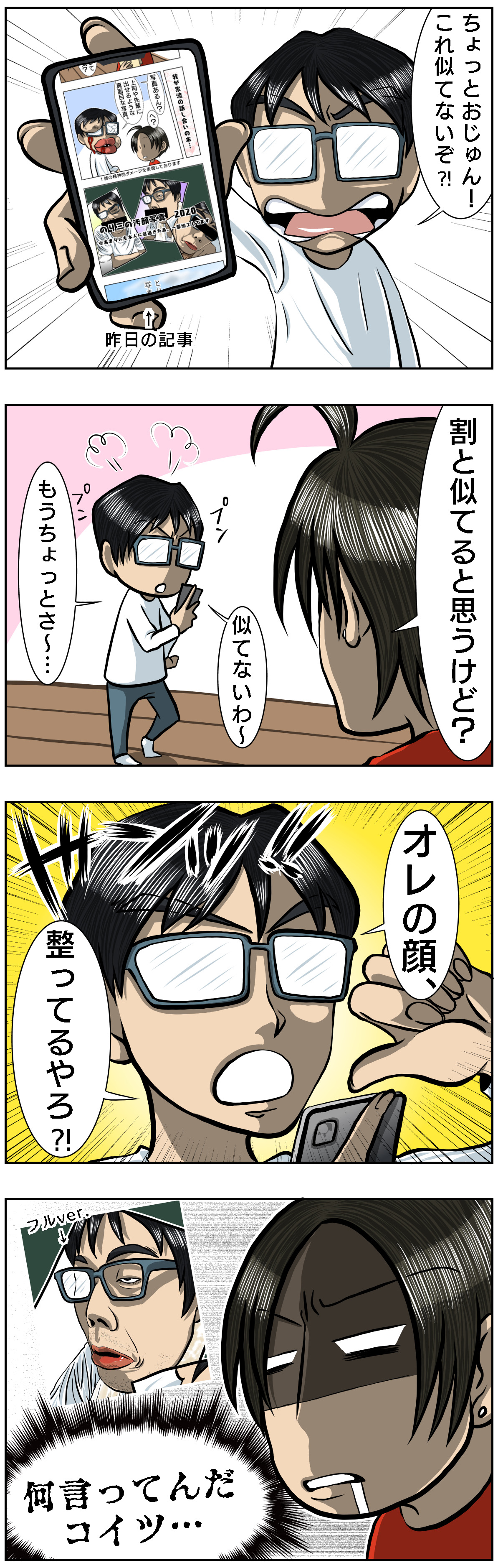 2020年11月29日 冗談だと思いたい旦那の自己評価 是非、昨日の記事を読んだ上でご覧ください 悪いけど激似だからな 強いていうならもっと肌が黒くて汚いよ。 うちの旦那さん、 気でも狂ったかと思いましたwww おかげでネタになりましたがwww NO似顔絵、NOライフ! ではでは〜またお会いしましょ♪ 人気ブログランキングに参加していますよろしければ下記バナーをポチッとお願いします!人気ブログランキング 冗談だとしても自己評価が高いのはいいことだ。 のり三は自己評価も高いが、 自己肯定力も高い。