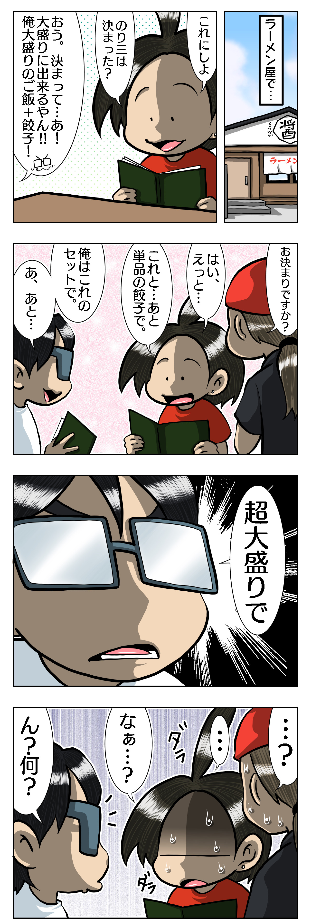 2022年07月29日 ラーメン屋の店員さんを困らせた、夫の注文 超大盛りにする気だったの…?! 「超」大盛りなんてメニュー無かったと 思って確認したら「麺」!!!! 本人は目が悪いから見間違えたと 言っておりましたが… ちょっと前に視力検査してメガネ買い替えたん だけどなぁ…??( ̄▽ ̄) 結局この後、店員さんに 「ご飯も無料で大盛りできますが…」と 言われて「じゃぁ大盛りで!」と言って 大盛りラーメン+大盛りご飯+餃子5個を 食べ切ったのり三ですが、最近… 「食が細くなった」と言っております。 そんだけ食べておいて??( ̄▽ ̄) めちゃくちゃ食うとるがな! と言いたいんですが、言うと面倒臭いので 心の中にしまっておこうと思います。 NO大盛り、NOライフ! ではでは〜またお会いしましょ♪ 人気ブログランキングに参加していますよろしければ下記バナーをポチッとお願いします!人気ブログランキング 麺が大好きな夫 漢字が苦手な夫〜居酒屋編〜 漢字が苦手な夫〜勉強編〜