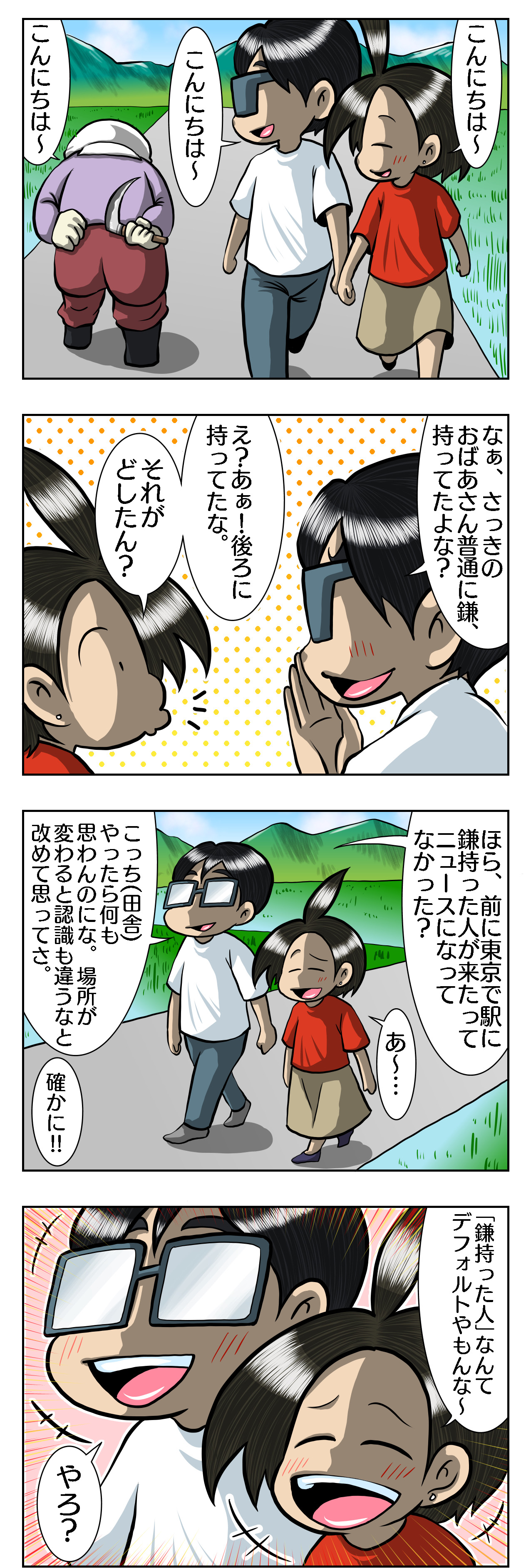 2022年07月31日 田舎ならではの危険人物 歩いてるスーツの人は怪しい あと、見た事がない人とか車とかね。 田舎だと直ぐに分かりますwww スーツだと銀行員さんの可能性もあるけど 原付に乗ってるしなぁ…なのでスーツで 「歩いてる」人は目立ちます。 「田舎あるある」だと思う( ̄▽ ̄) NO危機管理、NOライフ! ではでは〜またお会いしましょ♪ 人気ブログランキングに参加していますよろしければ下記バナーをポチッとお願いします!人気ブログランキング 我が家の周りはのどかです ぼちぼちコイツの時期…